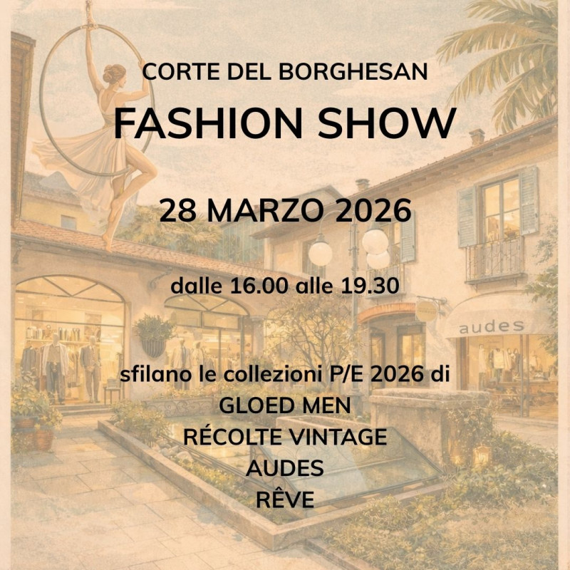 "Corte del Borghesan Fashion Show" sarà uno spettacolare pomeriggio dedicato alla moda, al viaggio e alla nutrizione, in programma dalle ore 16.00 alle 19.30: